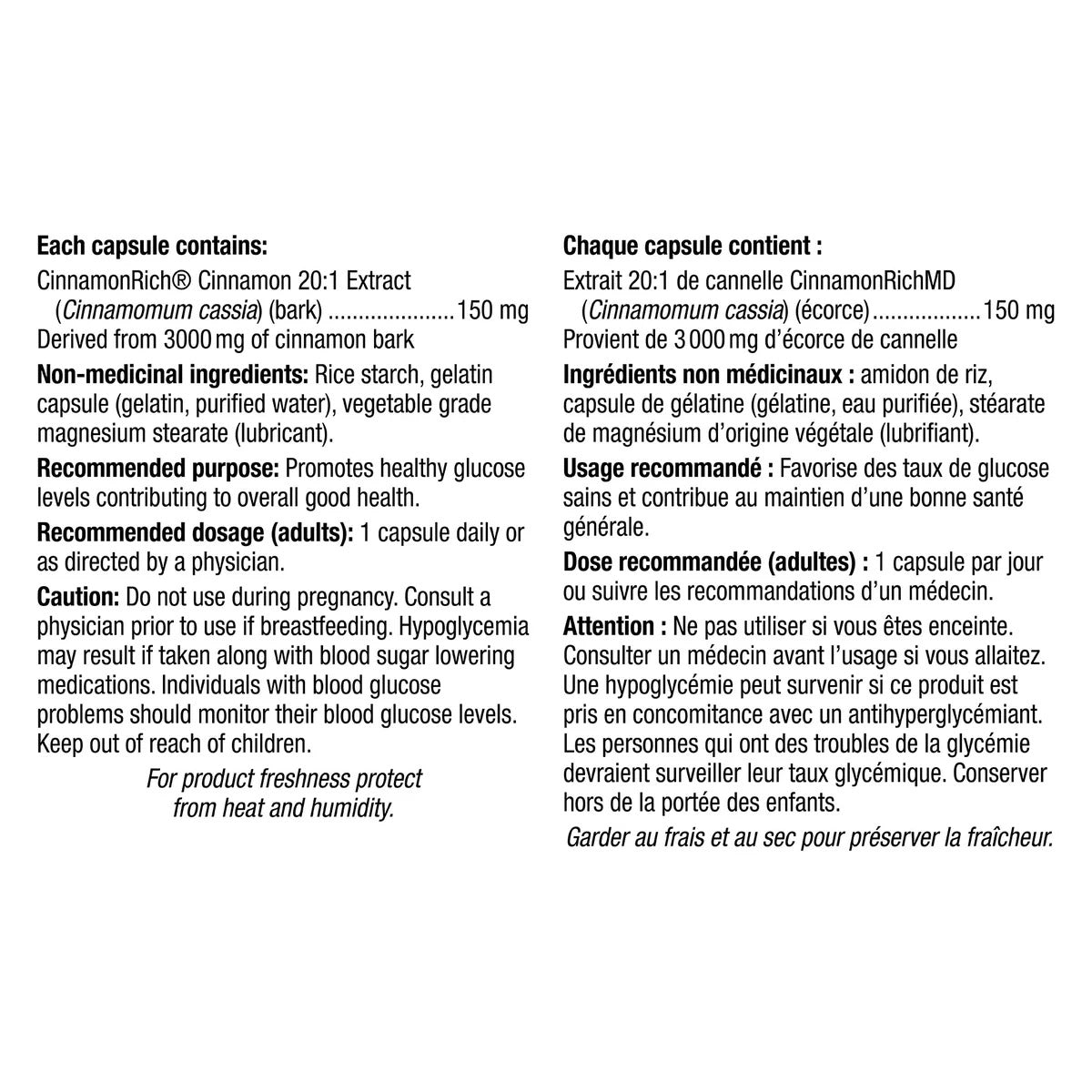 • 高濃度萃取:20:1 肉桂樹皮精華,每粒 150mg 相當於 3000mg 原材。